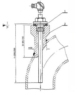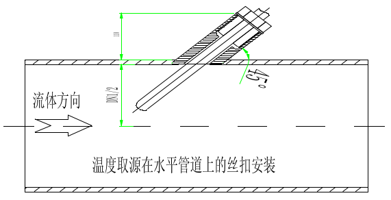 5. 热电偶或热电阻安装在易受被测介质强烈冲击的地方,以及当水平安装时其插入深度大于1米或被测温度大于700℃时,应采取防弯曲措施。 6. 表面温度计的感温面应与被测表面紧密接触,固定牢固。 7.在肘管上安装温度计,安装时必须使温度计轴线与肘管直管段的中心线重合。