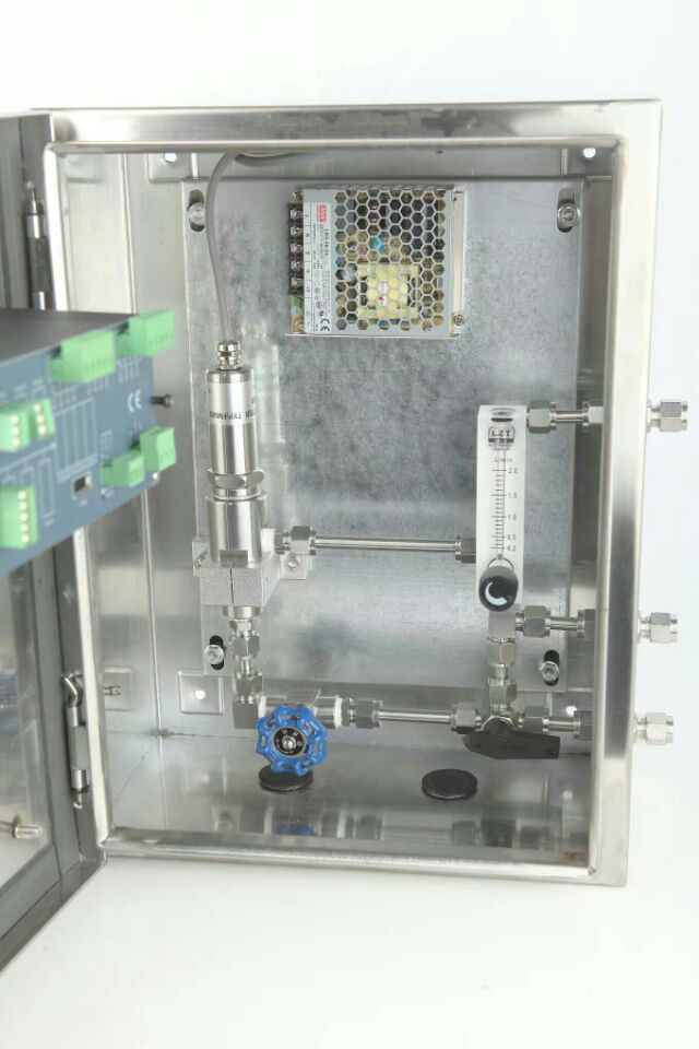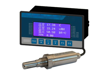 ZM880露点测试仪 在线式露点仪具有USB记录快速的反应速度等特性提供温湿度露点显示 ●传感器采用防腐蚀处理 ●输出4-20MA,RS232/485 ●带USB接口可记录数据(选配) ●可测量露点及温度,湿度 ●可选配压力传感器,同时测量压力 ●防腐露点变送器,适用于锂电行业 ●露点测量范围-80~+60℃(可做-80~+120℃) ●快速响应时间 ●可耐压20bar 使用了防腐蚀技术的露点变送器ZM880适合于工业OEM应用,如空气干燥设备,塑料干燥设备。ZM880在线露点仪的设计思想是能简单又可靠的对空气和气体的露点进行连续测量.灵巧的面板安装或台式安装显示仪与露点仪相连接.传感器是固定的安装在厂区或过程控制点。 ZM880在线湿度仪的结构设计非常精巧,采用标准的面板式安装(168 x 96mm)尺寸,可以方便地安装在任何控制面板上.报警器设定按钮位于前面板,面板保护级别为IP54,传感器为IP65 ■用户可选择输出信号类型和量程 ■支持湿度、温度和露点测量(可选配压力传感器显示压力) ■三种参数均支持图像模式, ■4-20mA/0-10V模拟输出,RS485通讯 ■同时显示露点,PPM,温度,湿度 ■报警指示,多变量继电器控制 ■湿度传感器自检和漂移补偿 ■温湿度校准和调节 ■带记录功能 ■湿度传感器自检和漂移补偿1) ■断线保护功能 ZM850变送器功能模块的说明: ZM880的功能模块可以单独选配,它们分别是模拟量输出模块,通讯模块,继电器控制模块.ZM880提供的模拟输出是两路三线制共地4…20mA电流信号或0…10V电压信号。用户可以通过跳线实现4…20mA或0…10V 转换,模拟输出信号用于远程传输,记录,控制或数据处理。每路模拟输出均可以设定为温度、湿度、露点中任意之一。 标配两路继电器触点信号输出,可分别针对温度、湿度、露点的上下限进行触发,由常开状态切换为常闭状态。